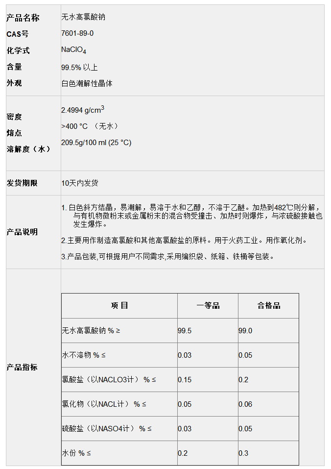 無(wú)水高氯酸鈉